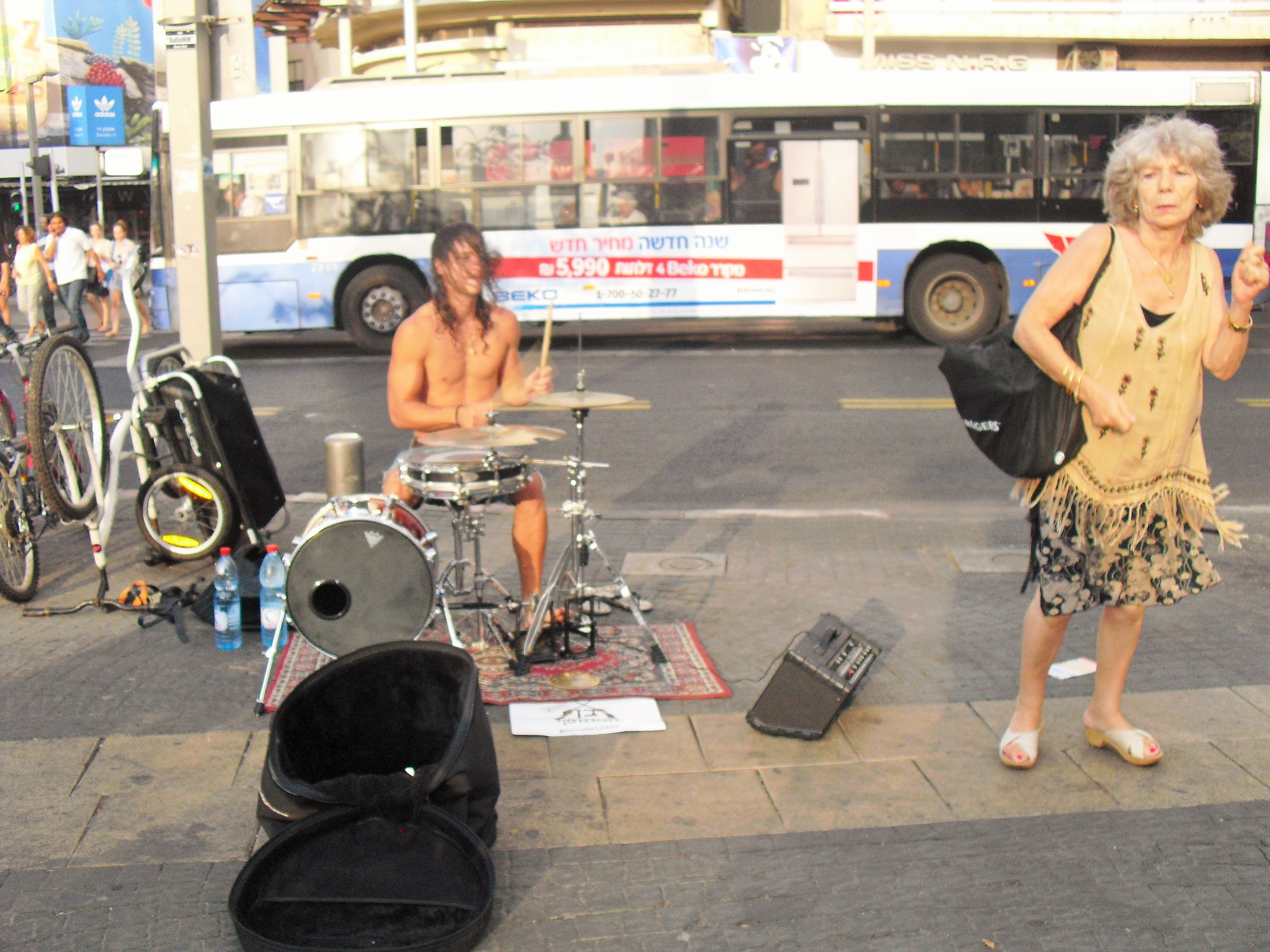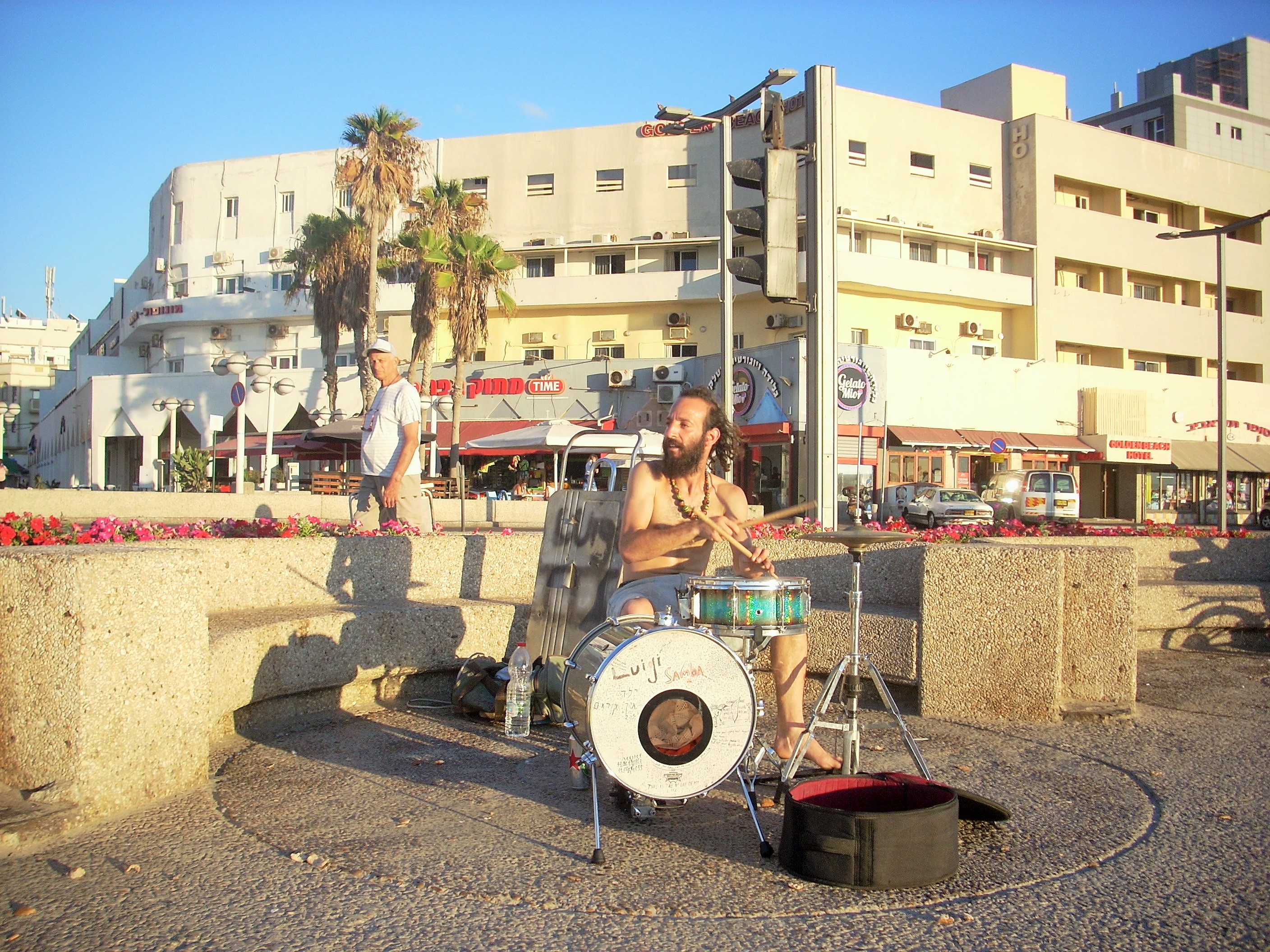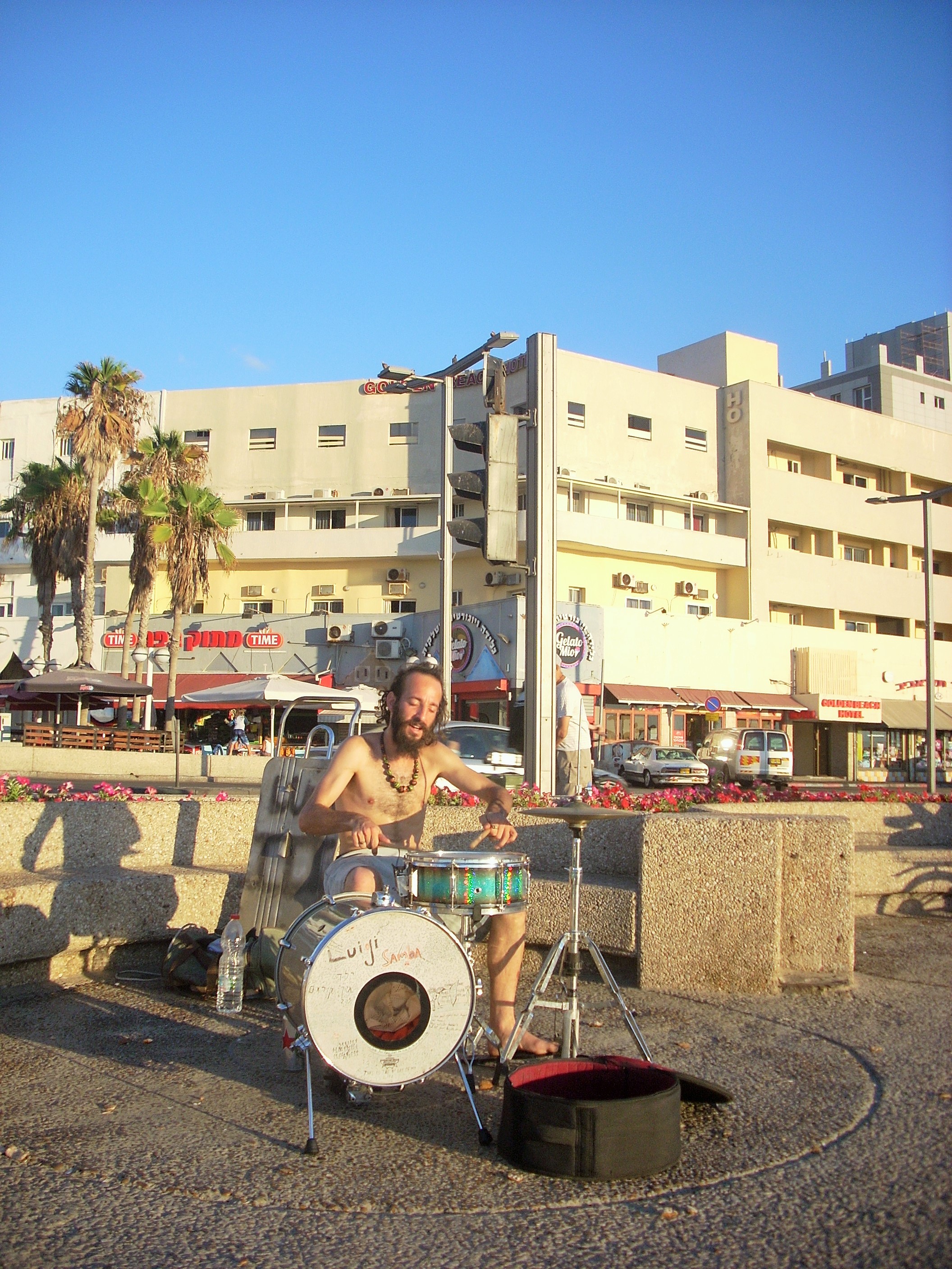 Trommeln an der Strandpromenade - Die Israeli lieben wohl nicht nur Katzen und Kinder, sondern auch das Trommeln...:)