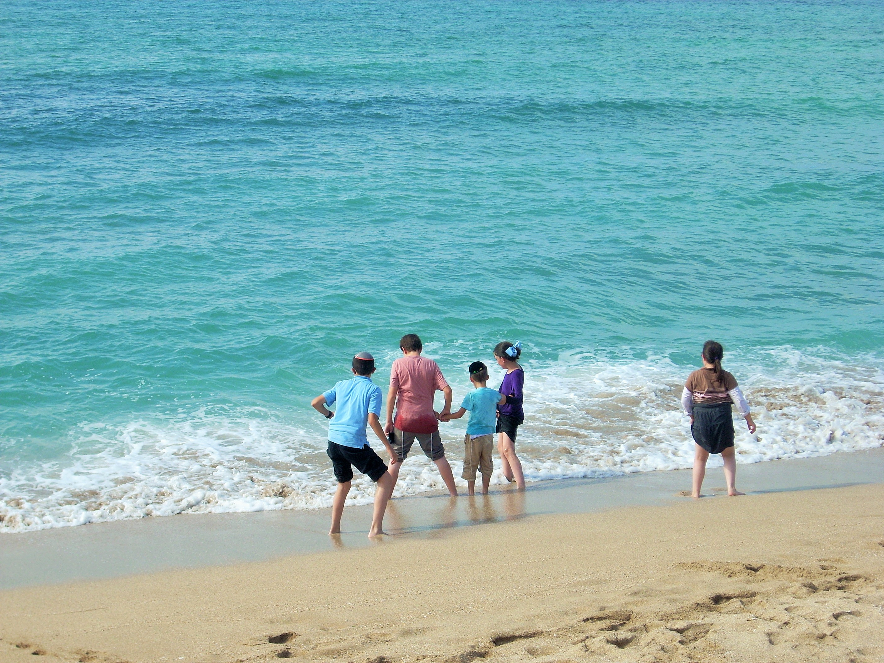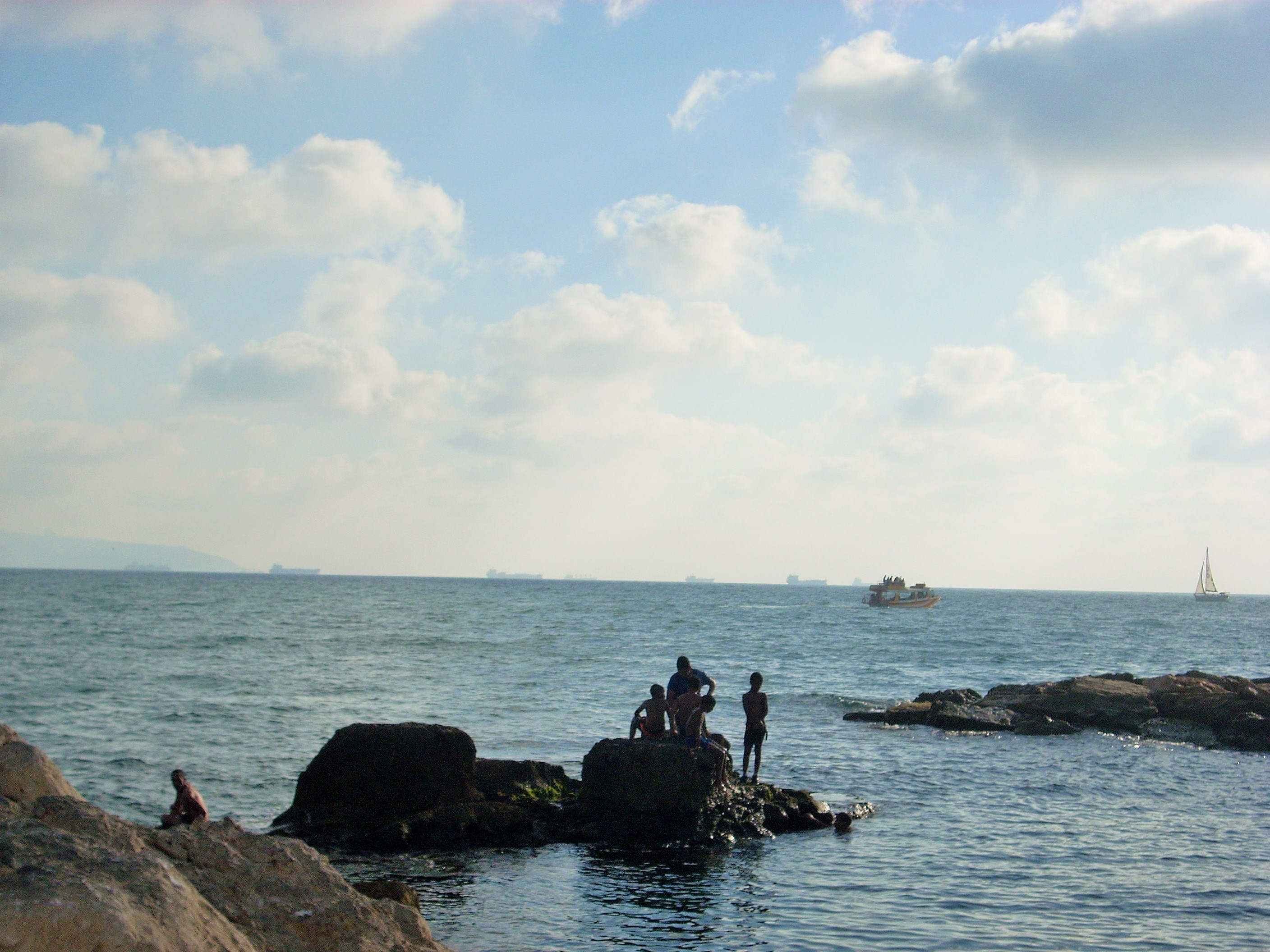 Auf dem Weg zurück ins Zentrum kam ich an diesem schönen Strand vorbei, wo orthodoxe jüdische Kinder am Strand spielten. Ich habe es wirklich bereut, keinen Bikini bei mir zu haben. Das Meer war verführerisch blau, der Strand sauber und beinahe leer.