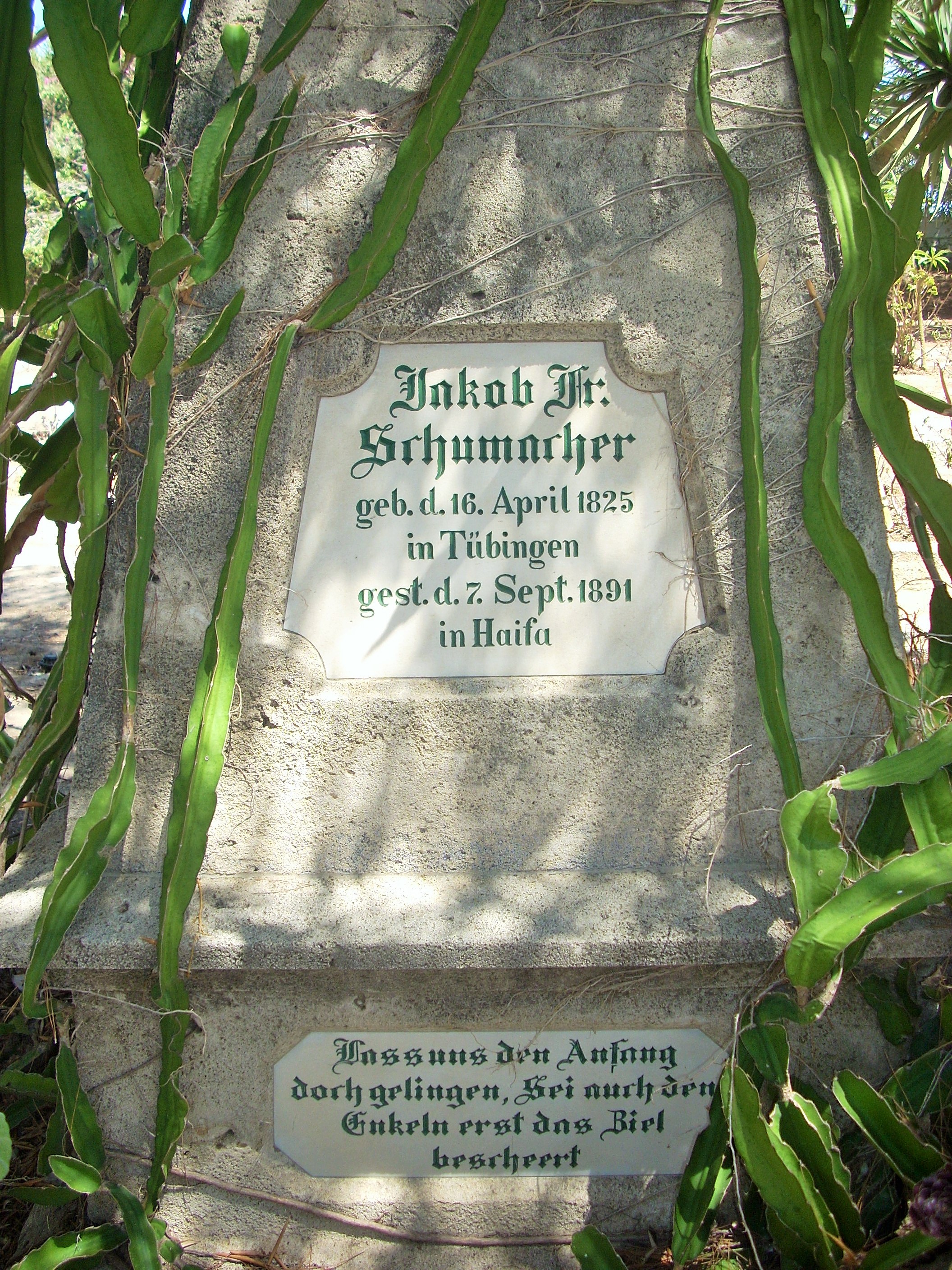 Mein Weg führte mich zum Templerfriedhof, der neben dem britischen Soldatenfriedhof liegt. Dieser Templerfriedhof ist neben dem in Jerusalem der einzige noch bestehende und der Tempelgesellschaft zuzuordnen, die nicht mit dem Templerorden verwechselt werden darf.